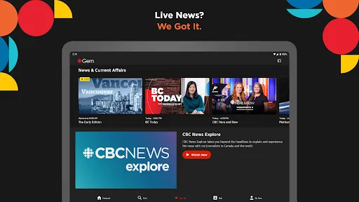 Want to start streaming exclusive video series? Say hello to CBC Gem. Watch some of the best shows and movies from across Canada and around the world - all for free. Not only can you watch hundreds of your favourite episodes of shows on demand, you can watch CBC TV live. Plus other stuff you can only find on TV. Want live news? No problem. Live sports? We got it.